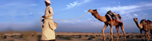 COLOURS OF INDIA:Historic buildings glimmer above Udaipur's romantic lake (above), a red-robed Buddhist monk steps out of Leh Palace (left), while (right) a Rajasthani cameleer leads his animals over the dunes. The desert is in stark contrast to the Himalayan peaks (lower right) that guard the north,