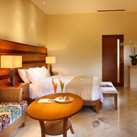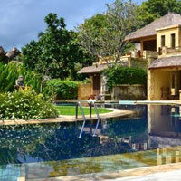 Santosa Pool Villa/ photo: hotel Wild pheasants locals call “pearl chickens” amble throughout the restaurant and grounds. The executive style villas seem designed for Singapore travellers with a no nonsense, service oriented feel. There’s a pool table by the bar with large screen TV and Lincoln is quick to pull together barbecue nights at the request of guests. Heading down the hillside property, Kebun has built a bar on the main road across from the Sheraton. Free WiFi can be accessed throughout. On the east coast of Lombok, just north of Mataram and close to Senggigi is the attractive Svarga Resort in a modern cubist style with its Hagia Spa, and elevated infinity pool with breezy views, and contemporary rooms, some with outdoor showers. This is an intimate resort with 25 units all connected by walkways that run along a gentle hillside past water features and gardens. Families can opt for a larger suite (Varda) with more space and added amenities. With a steep hillside location across from the Sheraton and a short amble from the art market, Puri Bunga Hotel provides fetching views and proximity to shopping and restaurants. The Dutch owner and manager, Marcel, promises the property -- with its 50 hillside bungalows and restaurant with dramatic Lumbung ceilings -- has some of the best hillside views on the strip. Off the restaurant is a large swimming pool with automobile inner tubes serving as floating chairs. Opened in 1990, the Sheraton Senggigi was another of the ambitious big five-stars with marble floors, a grand lobby and a variety of restaurants designed for upmarket families and couples. The property remains attractive and that would have to be largely credited to its lush gardens filled with birdsong, lagoon pool and quiet corners with plenty of deck chairs.